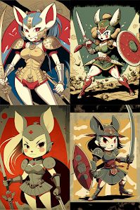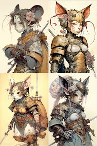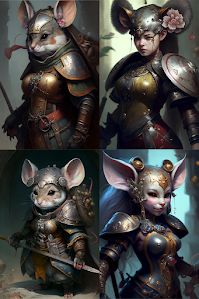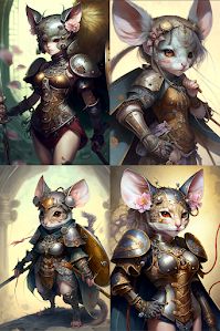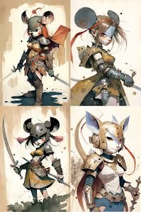 "anthropomorphic mouse warrior girl by"