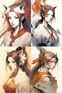 "manga kitsune woman by"