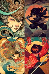 Prompt in the column header. Other conditions were: --ar (2:3/3:2) --seed 123 --niji