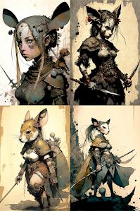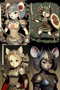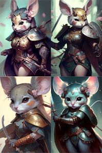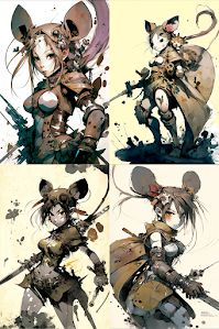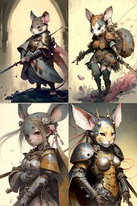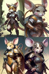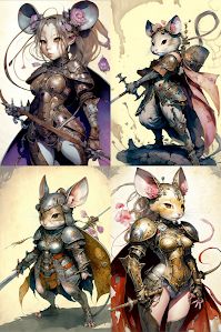 "anthropomorphic mouse warrior girl by"