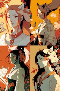 "manga kitsune woman by"